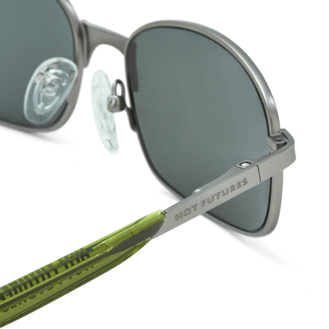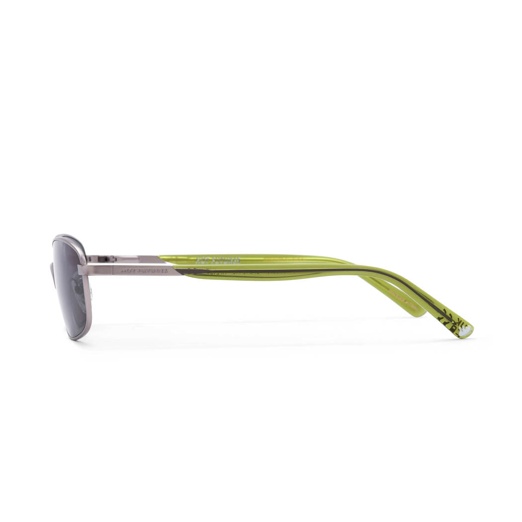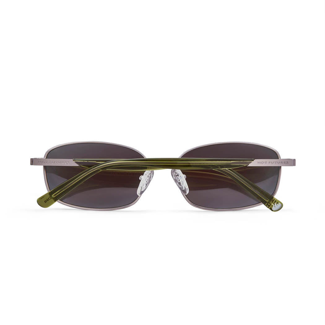 Sport luxe semi-wraparound frame technically constructed in stainless steel complete with integrated alloy hinges and ergonomic acetate temples. Fitted with 100% UVA/B protected dark green category 3 lenses for dynamic vision optionality and ultimate protection.