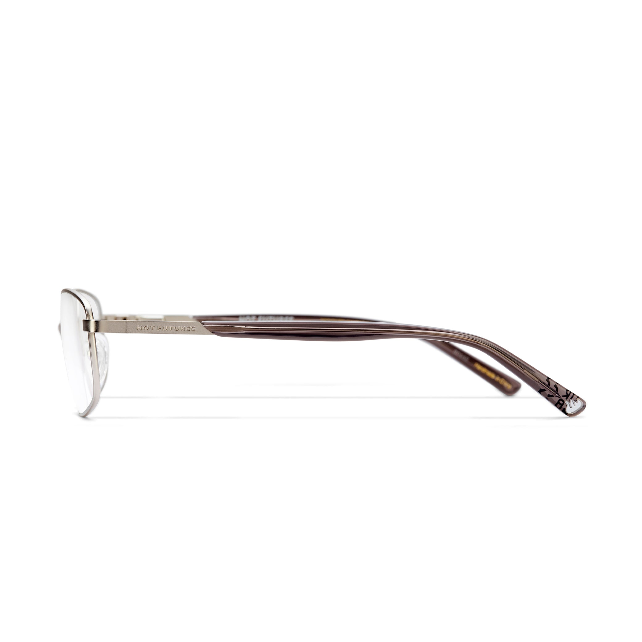 Sport luxe semi-wraparound matte silver frame technically constructed in stainless steel complete with integrated alloy hinges and ergonomic acetate temples.ย