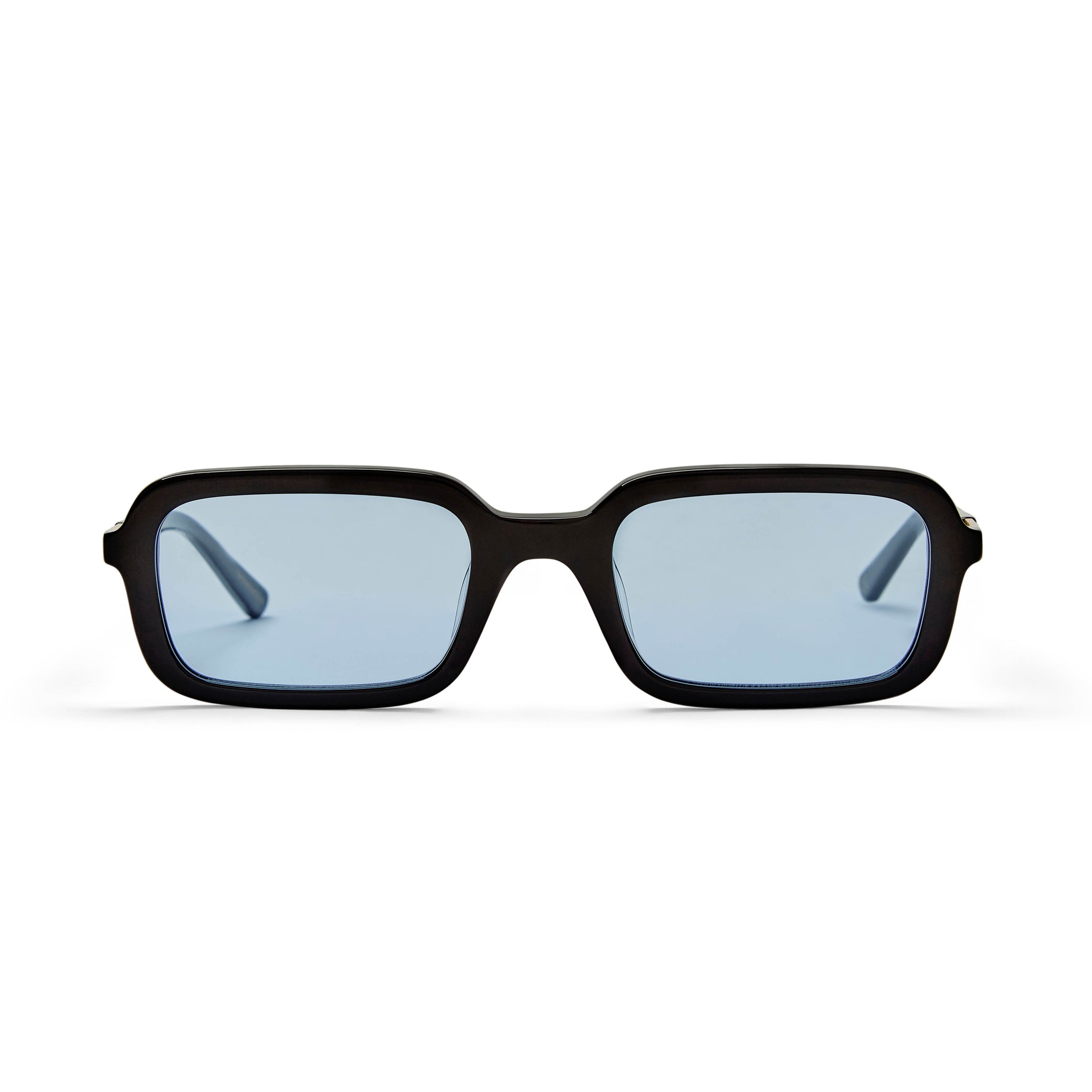 Recycled acetate frame (Global Recycled Standard). Blue tinted 100% UVA/UVB protected CR39 Category 1 lenses. Three barrel alloy hinges. Frame width (edge to edge): 141.5mm // Temple Length: 140mm // Lens width: 50.5mm // Lens height: 31.5mm.