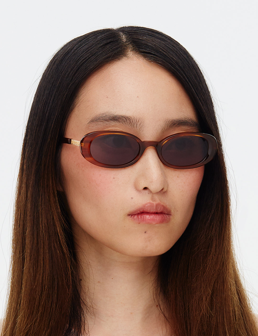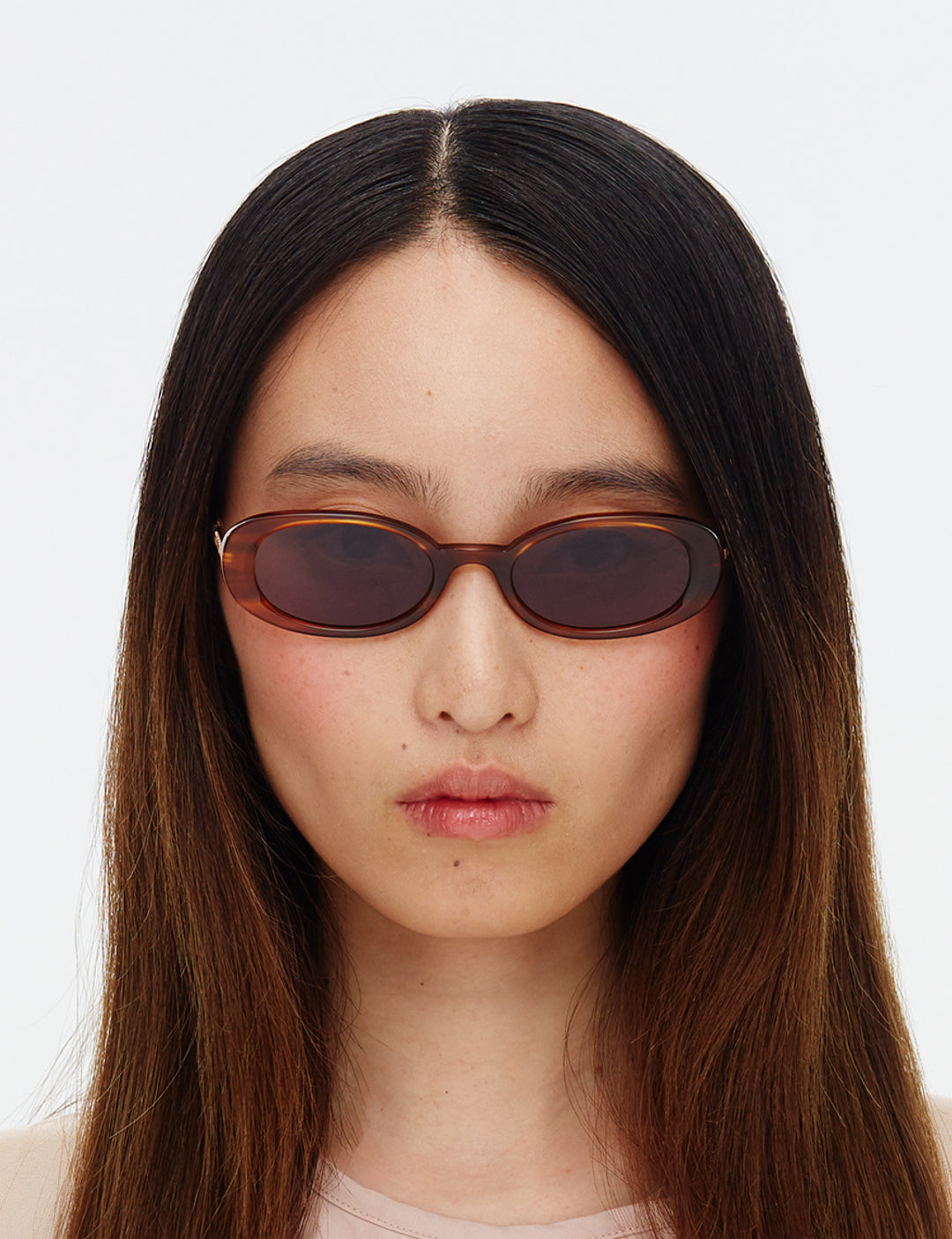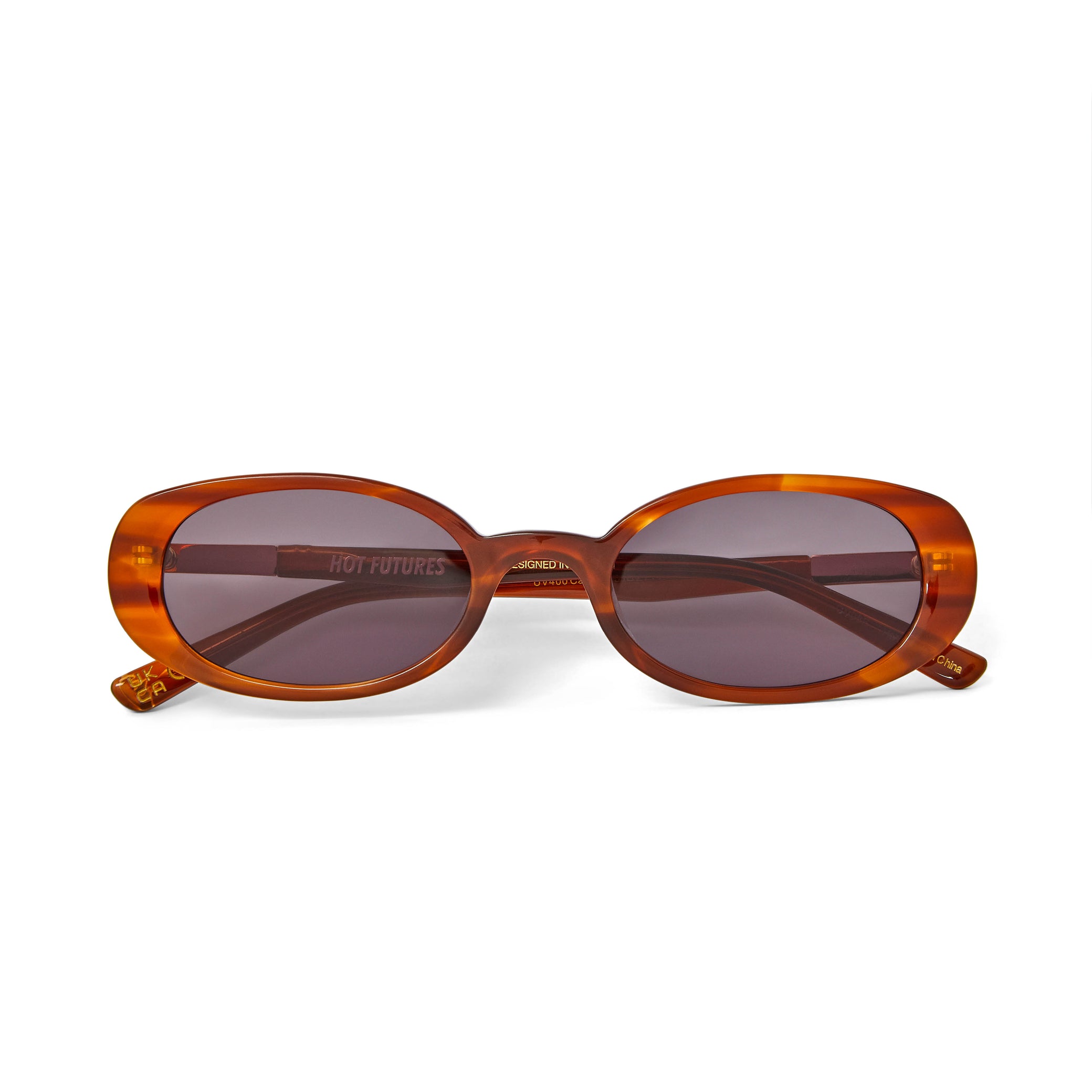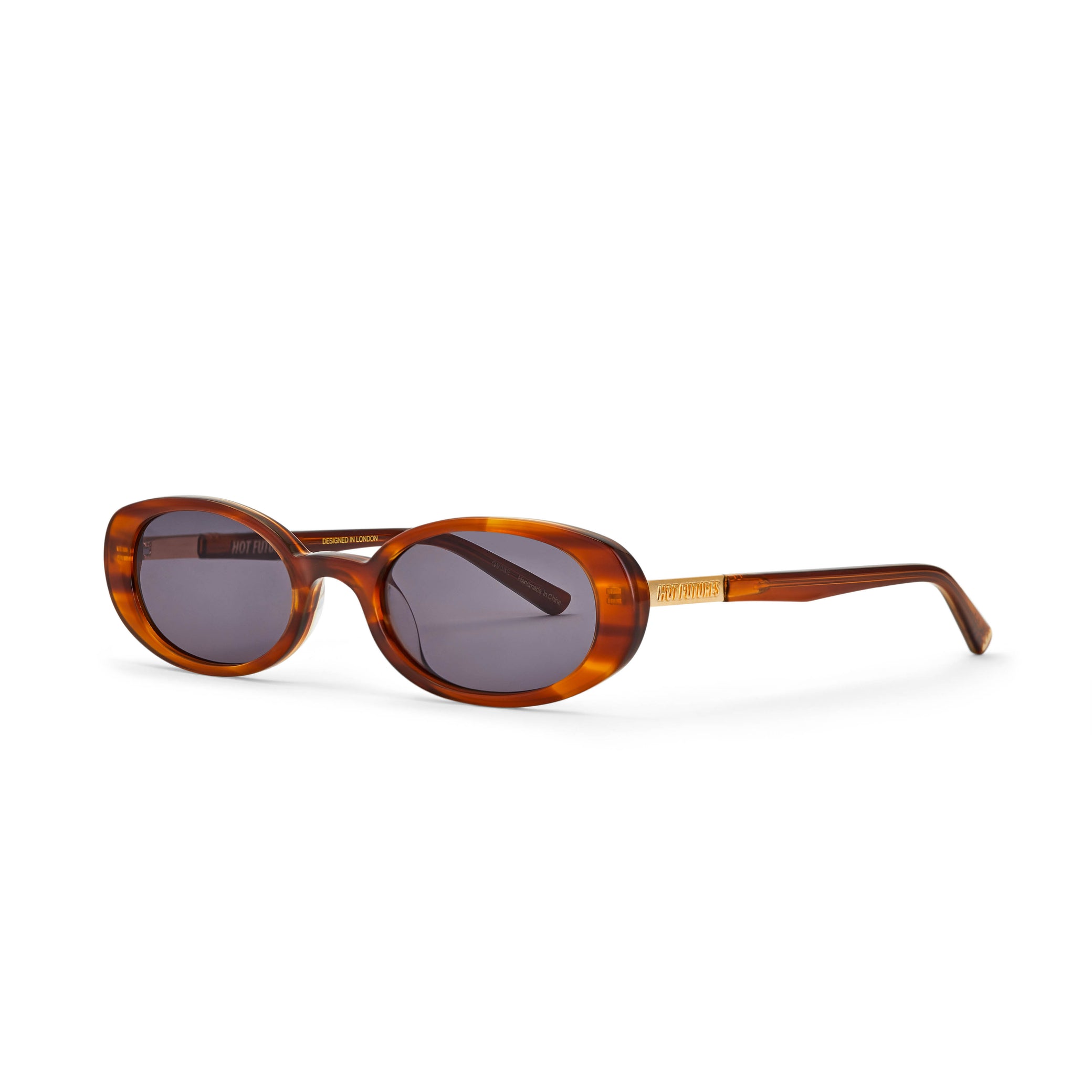 Eco caramel acetate frame. Green 100% UVA/UVB protected CR39 Category 3 lenses. Three barrel alloy hinges. Frame width (edge to edge): 139.5mm // Temple Length: 140mm // Lens width: 50mm // Lens height: 31mm.