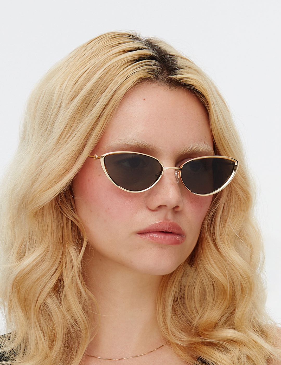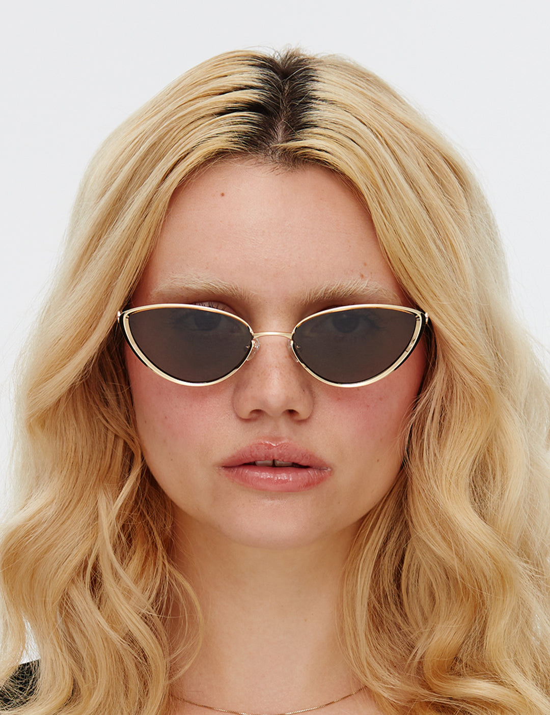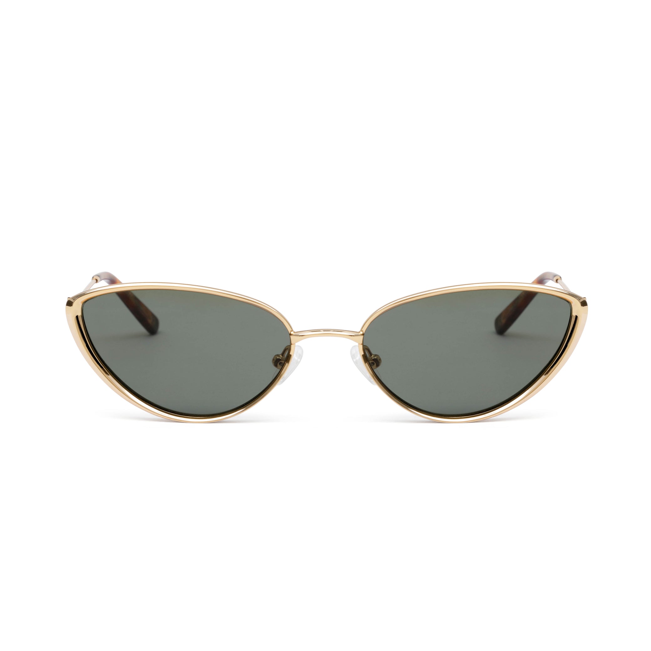 Handcrafted from high quality gold metal with premium acetate ear tips. Green 100% UVA/UVB protected CR39 Category 3 lenses. Frame width (edge to edge): 139mm // Temple Length: 143mm // Lens width: 56mm // Lens height: 35mm.