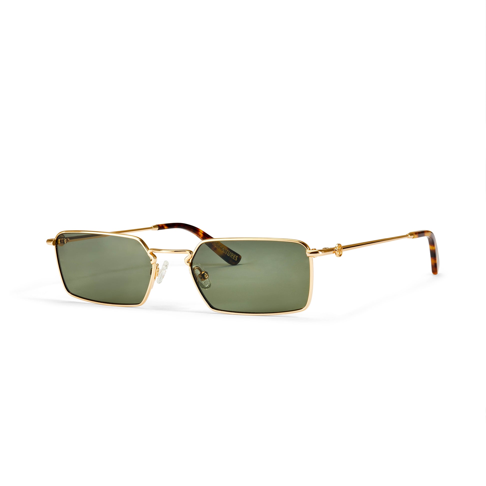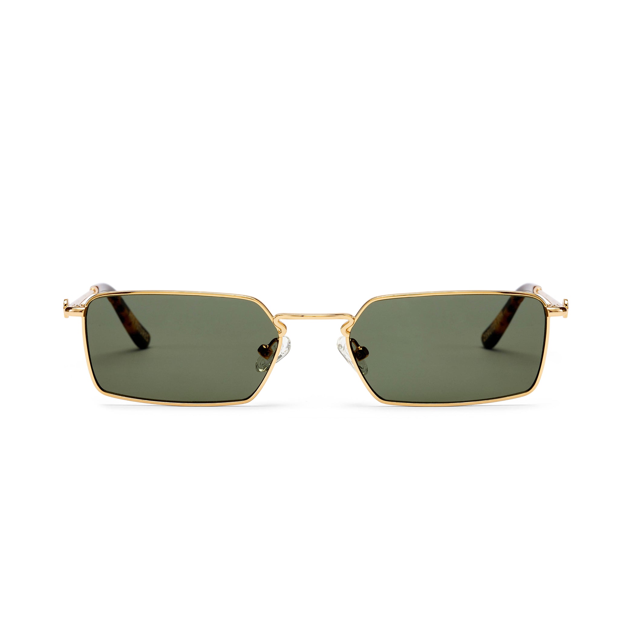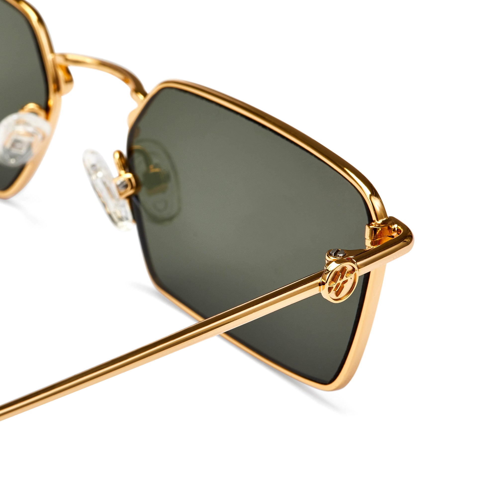 Handcrafted from high quality alloy metal. Dark green 100% UVA/UVB protected CR39 Category 3 lenses. Three barrel alloy hinges. Frame width (edge to edge): 135mm // Temple Length: 143mm // Lens width: 51.5mm // Lens height: 31mm.